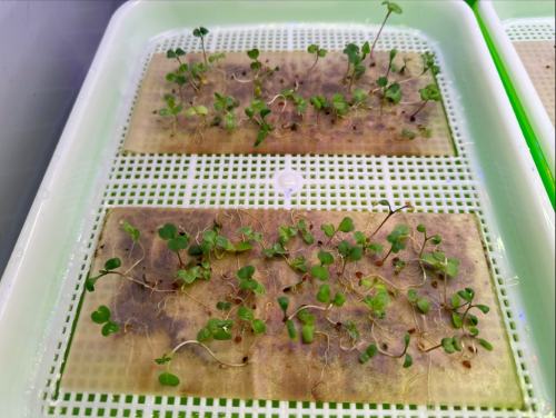 Il compost prodotto attraverso il processo di biodegradazione delle larve di mosca soldato è stato usato in esperimenti di fertilizzazione di micro-verdure in un sistema idroponico appositamente ideato per essere adattato ad un orto spaziale (credit: enea.it)